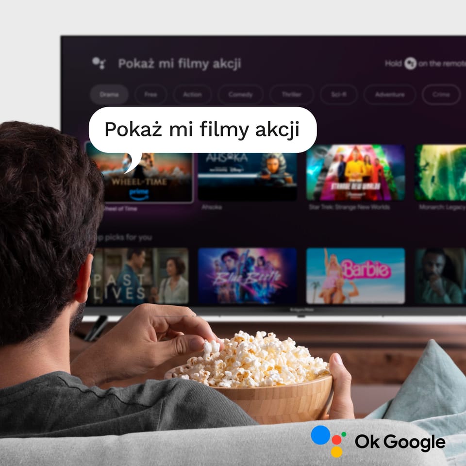 - - - - - - - - - - - - - - - - - - - - - - - - - - EKRAN- - - - - - - - - - - - - - - - - - - - - - - - - - Rozmiar: 43"Rozdzielczość: 1920 x 1080 pxPodświetlenie: D-LEDJasność: 200 cd/m2Kontrast: 4000:1Odświeżanie: 60 HzProporcje obrazu: 16:9Kąty widzenia: H: 178°, V: 178°Czas reakcji matrycy: 8 msLiczba wyświetlanych kolorów: 1,07 G- - - - - - - - - - - - - - - - - - - - - - - - - - TUNER TV- - - - - - - - - - - - - - - - - - - - - - - - - - Tuner cyfrowy DTV: DVB-S2/S/T2/T/C (obsługuje H.265)Tuner analogowy: tak- - - - - - - - - - - - - - - - - - - - - - - - - - DŹWIĘK- - - - - - - - - - - - - - - - - - - - - - - - - - Moc wyjściowa (RMS): 2x 8 WSystem: stereoTryby dźwięku: standardowy, muzyka, film, sport, własnyAutomatyczna regulacja głośności: takDolby Digital: tak- - - - - - - - - - - - - - - - - - - - - - - - - - FUNKCJE- - - - - - - - - - - - - - - - - - - - - - - - - - Automatyczne wyłączanieDrzemkaEPGBlokada rodzicielska- - - - - - - - - - - - - - - - - - - - - - - - - - USB MULTIMEDIA- - - - - - - - - - - - - - - - - - - - - - - - - - Odtwarzanie z USB: film, muzyka, zdjęciaFormat wideo: AVI, MP4, MPG, MPEG, MKV, MOV, VOB, TSFormat audio: MP3, WAV, M4A, AAC, FLACFormat zdjęć: JPEG, JPG, PNG, BMP- - - - - - - - - - - - - - - - - - - - - - - - - - SMART TV- - - - - - - - - - - - - - - - - - - - - - - - - - Smart TV: takSystem operacyjny: Google TVCPU: A55 Quad-coreGPU: G31Pamięć wewnętrzna: 8 GBPamięć RAM: 1,5 GBWi-Fi: tak- - - - - - - - - - - - - - - - - - - - - - - - - - WEJŚCIA / WYJŚCIA- - - - - - - - - - - - - - - - - - - - - - - - - - 2x Wejście RF (1x analogowe, DVB-T2/T/C; 1x DVB-S2/S)Gniazdo CI+3x HDMI (1.4)2x USB (2.0)Wejście kompozytoweSPDIF (Optyczne)Jack 3,5 mmRJ-45- - - - - - - - - - - - - - - - - - - - - - - - - - ZASILANIE- - - - - - - - - - - - - - - - - - - - - - - - - - Napięcie wejściowe: 220-240 V; 50/60 HzPobór mocy: 80 WPobór mocy (tryb stand-by): 0,5 W- - - - - - - - - - - - - - - - - - - - - - - - - - WYMIARY- - - - - - - - - - - - - - - - - - - - - - - - - - Wymiary TV z podstawą: 615 x 953 x 205 mmWymiary TV bez podstawy: 555 x 953 x 187 mm- - - - - - - - - - - - - - - - - - - - - - - - - - MONTAŻ ŚCIENNY- - - - - - - - - - - - - - - - - - - - - - - - - - Standard VESA: 200 x 200 mm- - - - - - - - - - - - - - - - - - - - - - - - - - ZAWARTOŚĆ ZESTAWU- - - - - - - - - - - - - - - - - - - - - - - - - - PilotInstrukcja obsługiBaterie