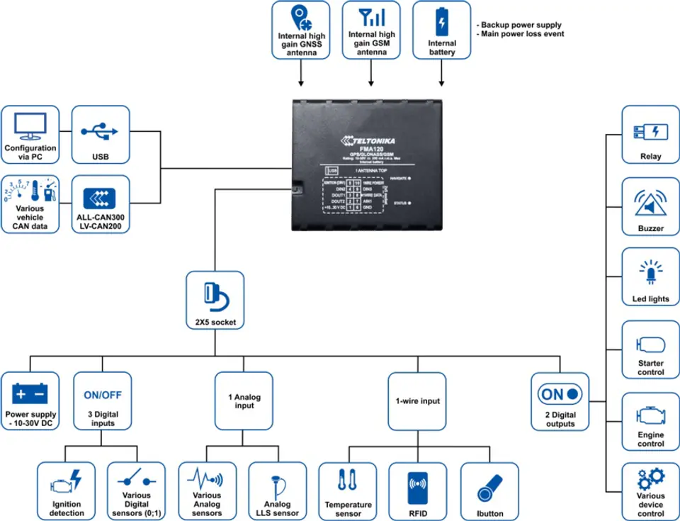 TELTONIKA FMA120 – INTERNAL HIGH GAIN GNSS AND GSM ANTENNAS WITH BATTERY
