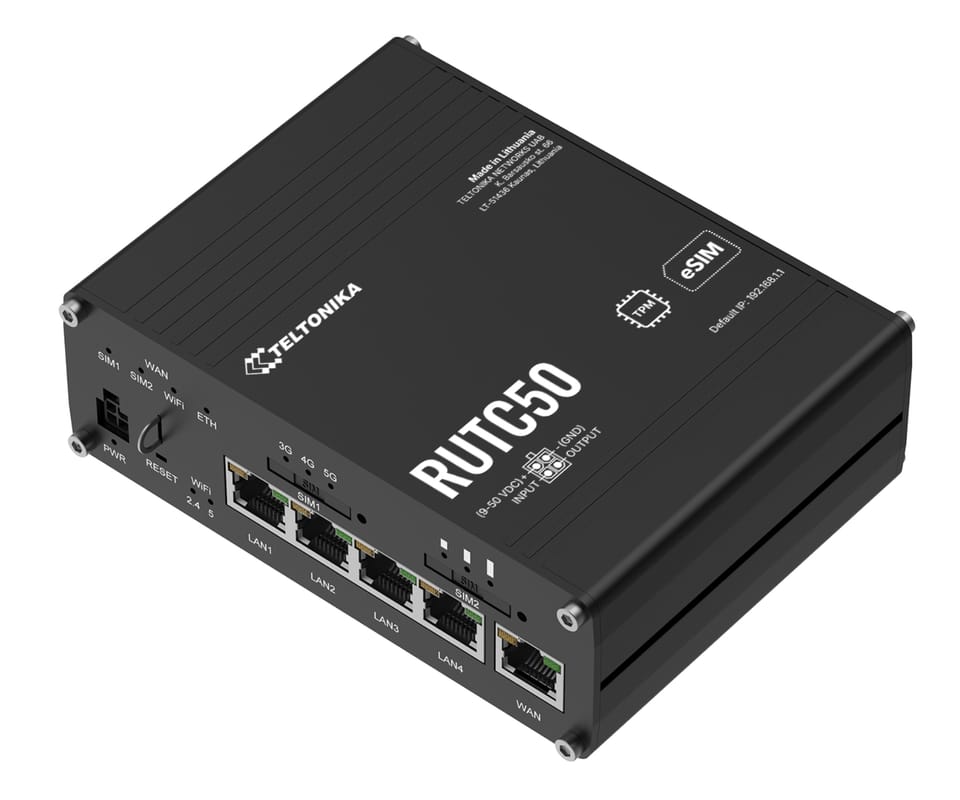 | Opis: | Teltonika Networks RUTC50 (EU) WiFi 6, 5G LTE router, eSIM |