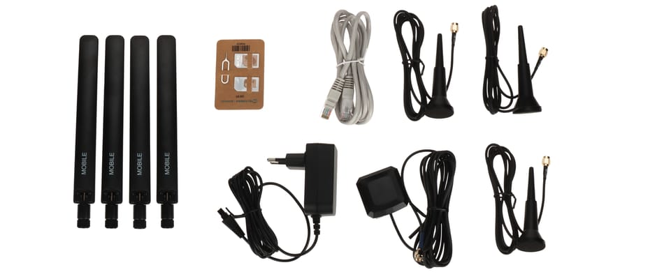 | Typ anteny: | 3 x Antena dookólna Wi-Fi (złącze SMA-RP), 4 x Antena dookólna 5G/4G (złącze SMA), 1 x Antena dookólna GNSS (złącze SMA) |