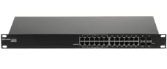 | Szybkość transmisji: | 10 / 100 / 1000 Mb/s - 24 Portów LAN & PoE, 1000 Mb/s - 4 Porty SFP (Uplink) |