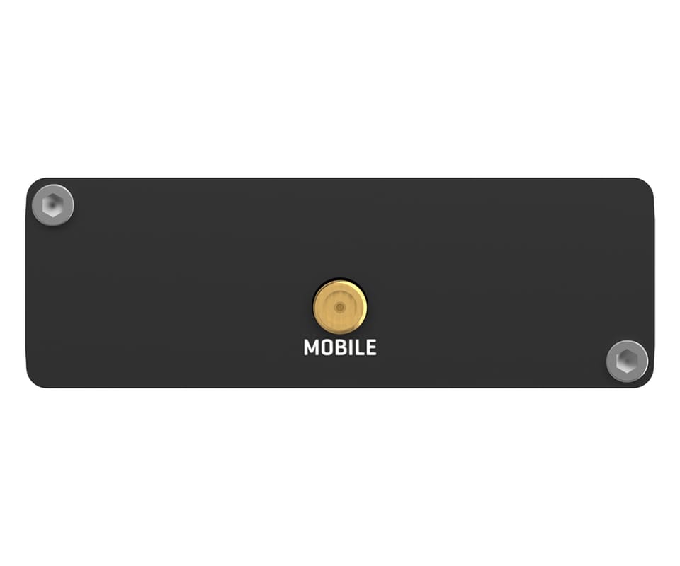 TRM200 to przemysłowy modem 4G LTE Cat 4 (z fallbackiem do 3G/2G) do zapewnienia łączności komórkowej w urządzeniach, które potrzebują transmisji danych przez interfejs USB. Zastosowano gniazdo SIM (Mini SIM 2FF) oraz złącze antenowe SMA, a zasilanie i komunikacja realizowane są przez microUSB (5V). Aluminiowa obudowa IP30 i zakres temperatur pracy -40°C do 75°C wspierają zastosowania przemysłowe.