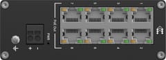 Switch Teltonika TSW040 posiada 2-pinowe przemysłowe gniazdo zasilania oraz obsługuje szeroki zakres napięć zasilania