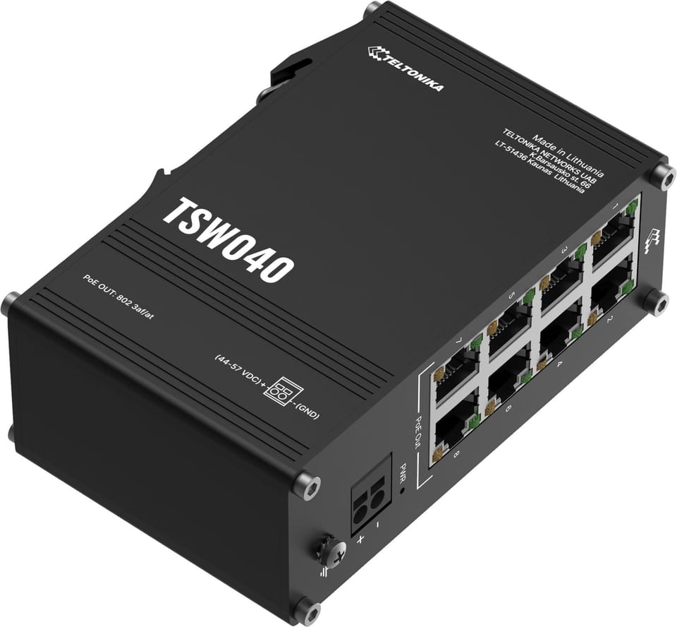 Switch PoE TSW040 to urządzenie typu przemysłowego zapewniające płynną transmisję sieciową z prędkością 10 / 100 MbpsUrządzenie idealnie nadaje się do budowy sieci kamer IP z zasilaniem w standardzie PoE 802.3af / 802.3atUrządzenia tego typu mogą być stosowane w instalacjach realizowanych w obiektach przemysłowych w niekorzystnych warunkach takich jak wysoka lub niska temperatura