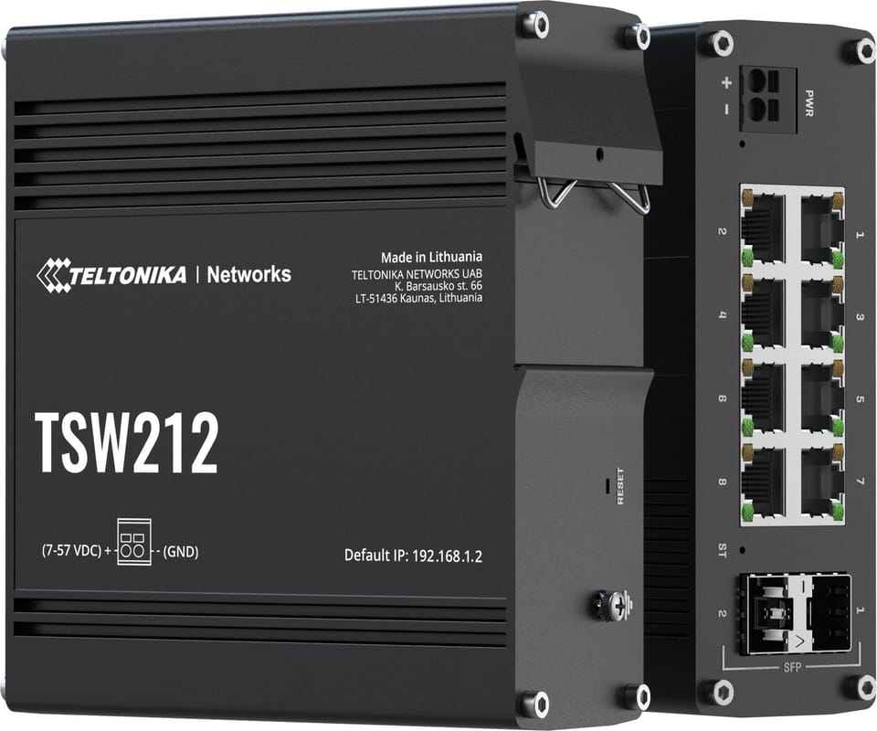 Teltonika TSW212 MANAGED SWITCH 8 x port non-PoE+ switch with 2 x SFP ports for fibre optic communication