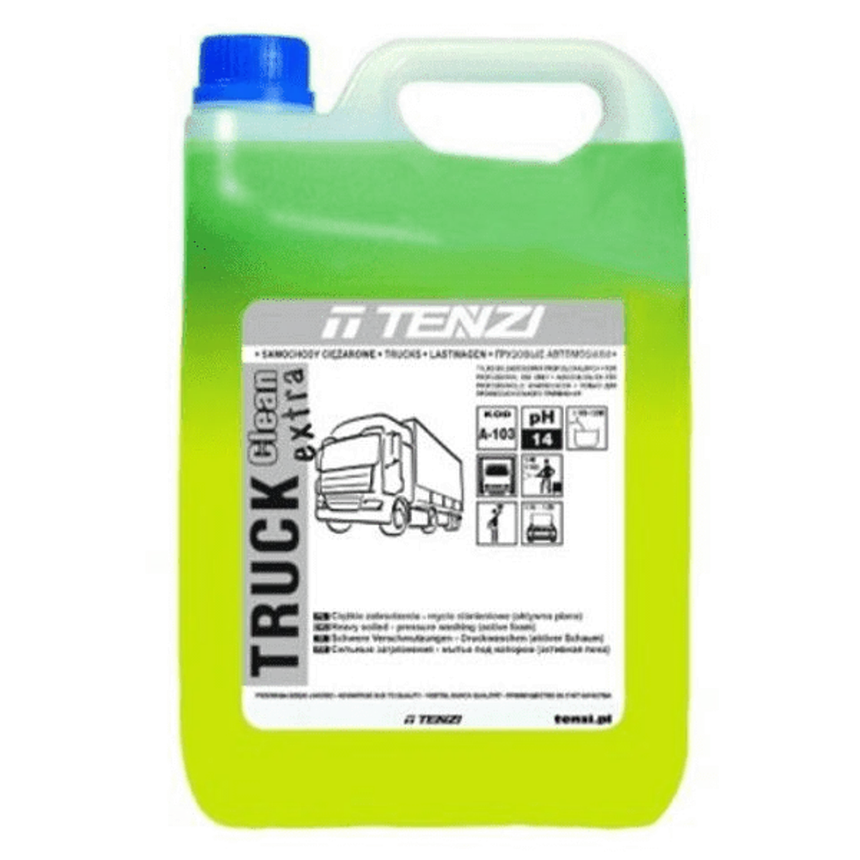 Tenzi Truck Clean Extra – wzmocniona formuła produktu do mycia skrajnie zabrudzonych powierzchni twardych, odpornych na alkalia. Pieniący, szybko działający, skuteczny. Możliwość wykorzystania preparatu do mycia pojazdów, maszyn i urządzeń w przemyśle motoryzacyjnym ciężkim, a także w rolnictwie. Skuteczny i wydajny, usuwa smary, oleje i tłuszcze. Nie stosować do mycia powierzchni i urządzeń mających kontakt z żywnością.