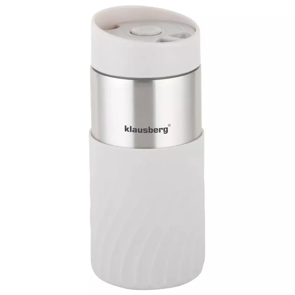 Kubek - termos nowej generacji o pojemności 300 ml firmy KLAUSBERG wykonany ze stali nierdzewnej z izolacją próżniową DOUBLE WALL. Kubek posiada odkręcana pokrywkę z wylewką Click-clack. Przycisk w pozycji OFF zamyka szczelnie kubek i działa on jak termos. Gdy przycisk jest w pozycji ON można z niego korzystać jak ze zwykłego kubka. Z dolnej części kubek wykończony opaską silikonową z falistym wzorem zapewniającą pewny chwyt. Izolacja próżniowa sprawia że kubek długo utrzymuje temperaturę wewnątrz, podobnie jak termos. Podstawa antypoślizgowa. Kubek termiczny Klausberg prezentuje się jako esencja nowoczesnego designu i funkcjonalności. Jego beżowy kolor w połączeniu ze srebrnymi elementami tworzy doskonałą harmonię, dodając mu nie tylko elegancji, ale też charakteru.