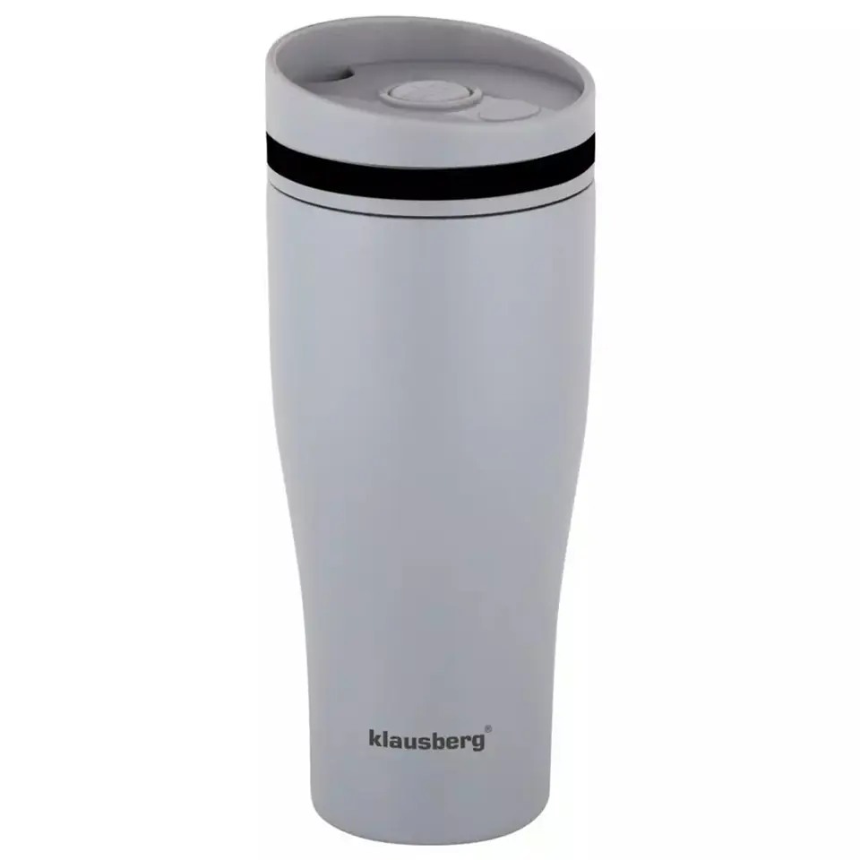 Kubek - termos nowej generacji o pojemności 380 ml firmy KLAUSBERG wykonany ze stali nierdzewnej z izolacją próżniową DOUBLE WALL. Kubek posiada odkręcana pokrywkę z wylewką Click-clack. Przycisk w pozycji OFF zamyka szczelnie kubek i działa on jak termos. Gdy przycisk jest w pozycji ON można z niego korzystać jak ze zwykłego kubka. Izolacja próżniowa sprawia że kubek długo utrzymuje temperaturę wewnątrz, podobnie jak termos. Podstawa antypoślizgowa. Kubek termiczny Klausberg prezentuje się jako esencja nowoczesnego designu i funkcjonalności. Jego jednolity odcień szarości sprawia, że jest zarówno uniwersalny, jak i wyjątkowo estetyczny.