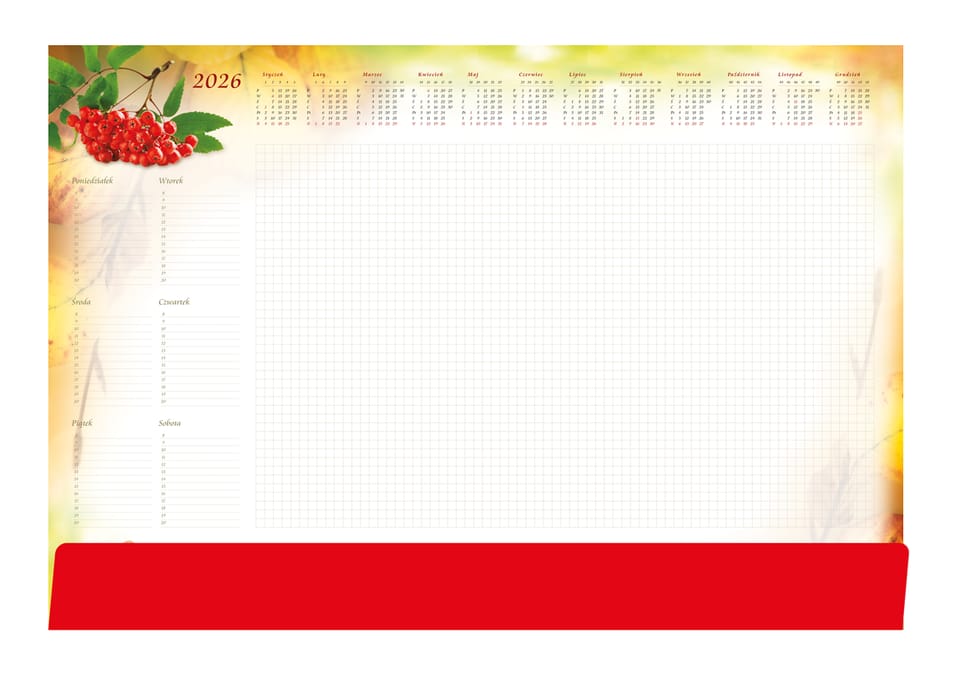 Terminarz posiada kalendarium na 2 lata umieszczone na jednej stronie, co ulatwia organizacje zarówno biezącego roku, jak i nadchodzącego.