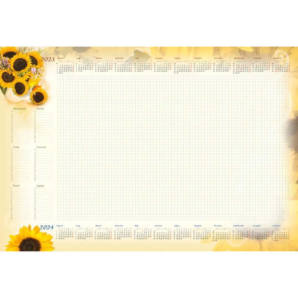 Terminarz posiada kalendarium na 2 lata umieszczone na jednej stronie, co ulatwia organizacje zarówno biezącego roku, jak i nadchodzącego.