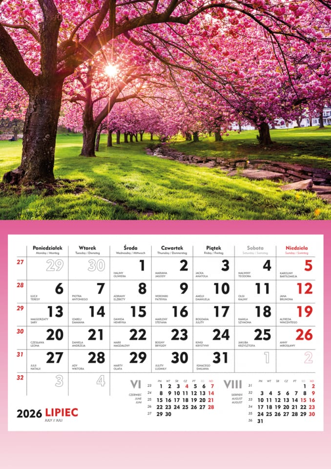 - Uklad kalendarium: 1 miesiąc - 1 kartka