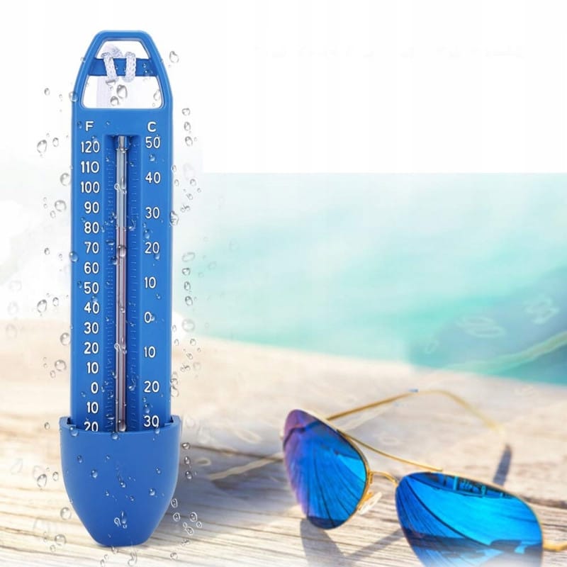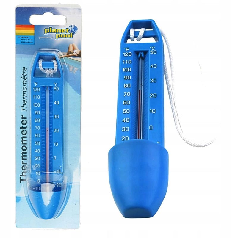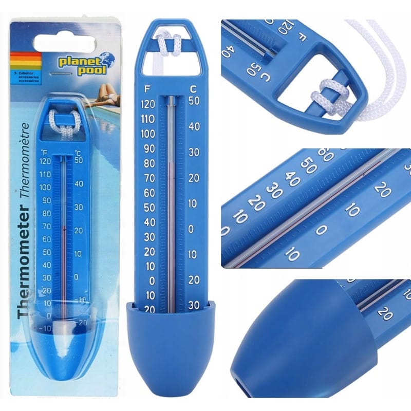 PŁYWAJĄCY TERMOMETR 7`` DO BASENUPLANET POOL2500-005Pływający termometr do basenu ogrodowego pozwoli określić, jaka temperatura wody panuje w zbiorniku. Swobodnie unosząc się na powierzchni, wyświetla otrzymane wyniki, zarówno w stopniach Celsjusza, jak i Fahrenheita.To praktyczny dodatek, który ułatwi korzystanie z Twojego basenu.Termometr pływający to fajny, praktyczny dodatek do mierzenia temperatury wody w basenie. Wyposażony jest w sznurek, którym możesz przywiązać go do stelaża. Dzięki temu, masz go zawsze w zasięgu ręki oraz możesz szybko skontrolować temperaturę w zbiorniku.Komfortowa temperatura wody w przenośnym basenie umożliwia pełne korzystanie z atrakcji, które zapewnia. Dokładny pomiar ciepła jest również niezbędny w momencie stosowania dodatkowego systemu ogrzewania wody i konieczności sprawdzenia efektów tych działań.Termometr pływa zawsze w pozycji pionowej.GŁÓWNE ZALETY TERMOMETRU WYTRZYMAŁA KONSTRUKCJA – wykonany z odpornego tworzywa ABS. PROSTY W UŻYCIU – wystarczy włożyć do wody i odczytać wskazanie na skali. STAŁE ZANURZENIE – konstrukcja gwarantuje stabilne unoszenie się na wodzie. POSIADA SZNUREK – pozwala na łatwe przyciągnięcie termometru.Praktycznym dodatkiem do twojego basenu, który ułatwi Ci swobodne korzystanie jest pływający termometr, pozwoli on określić temperaturę wody jaka panuje w zbiorniku wyświetla otrzymane wyniki, zarówno w stopniach Celsjusza, jak i Fahrenheita.Posiada również sznureczek dzięki któremu można przywiązać termometr w dowolnym miejscu. Jest wykonany z wytrzymałego tworzywa ABS. Jego konstrukcja sprawia, że utrzymuje się on na powierzchni wody. WYMIARY TERMOMETRU Waga: 0,03kgWysokość:17cmSzerokość: 4cmGłębokość / Grubość: 3cmNIEBIESKA WODABASENCHEMIA DO BASENUKOD PRODUKTU: 70305