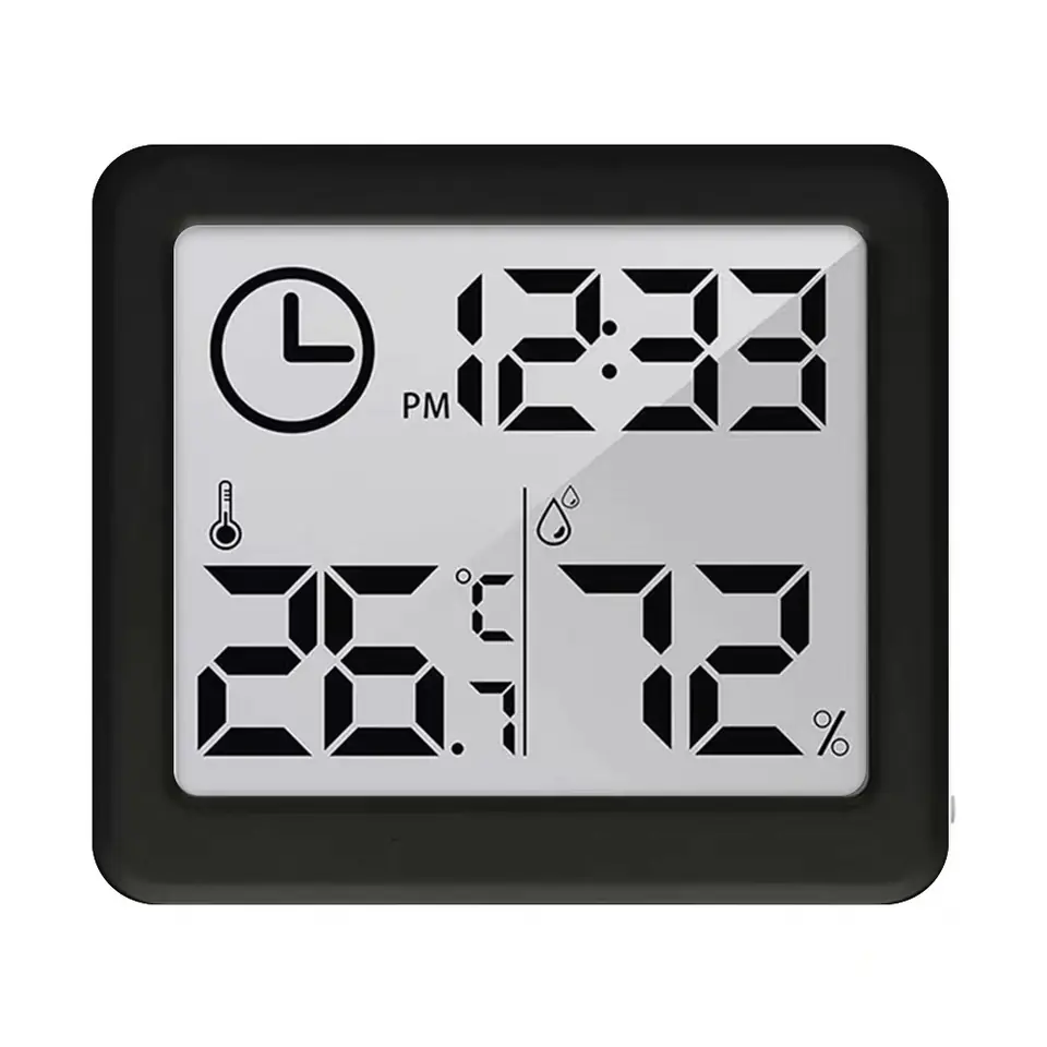 Czytelny ekran wyświetla jednocześnie temperaturę, wilgotność oraz godzinę.