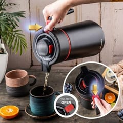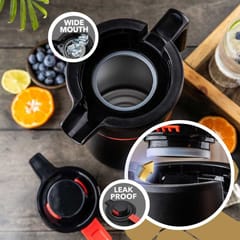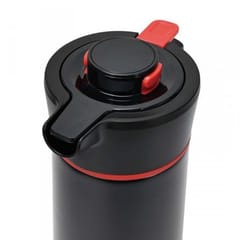 Nowoczesny czarny design z subtelnymi czerwonymi akcentami sprawia, że termos doskonale prezentuje się na stole podczas spotkań biznesowych, rodzinnych uroczystości czy eventów.