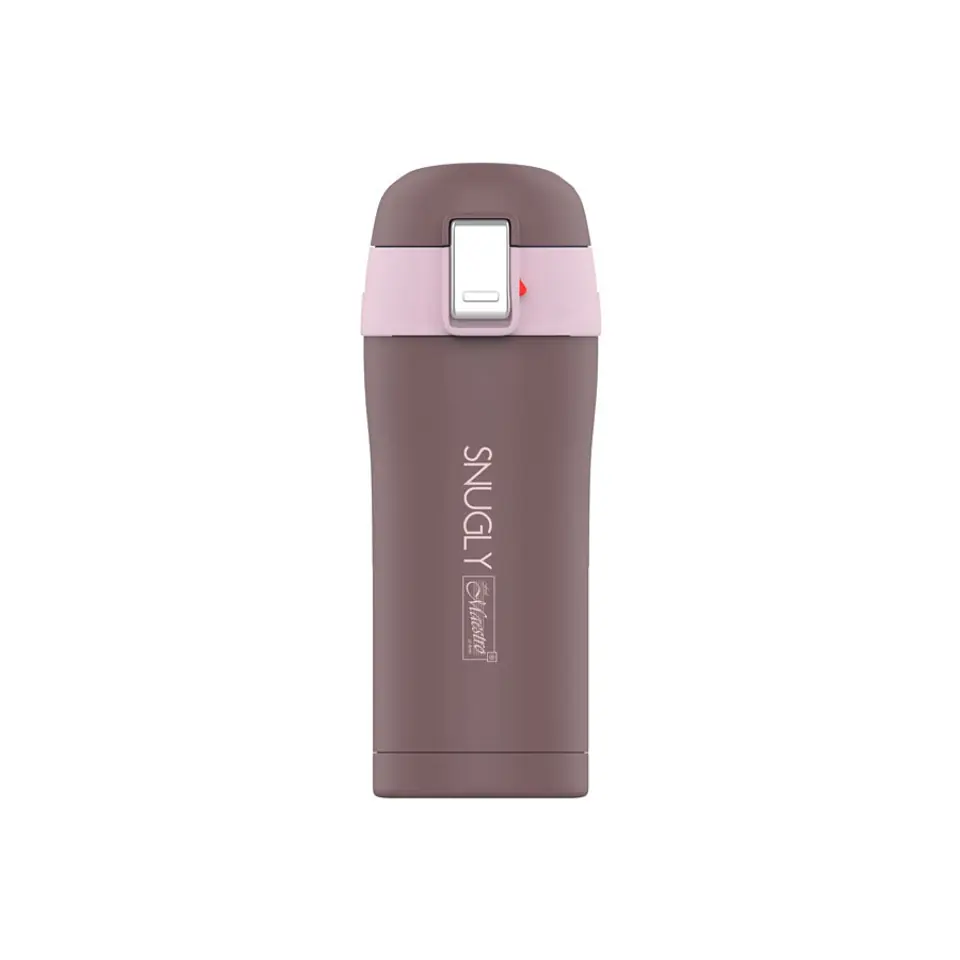 Wyposażony w korek otwierany za pomocą przycisku oraz wygodny "dziubek" do picia, umożliwia picie bez konieczności odkręcania pokrywy. Dodatkowo posiada blokadę otwierania, która zapobiega przypadkowemu wylaniu napoju. Kubek jest szczelnie zamykany dzięki podwójnej uszczelce, a jego antypoślizgowa podstawa i gumowana obudowa zapewniają stabilność oraz wygodę użytkowania.