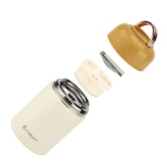Pokrywka termosu pełni funkcję praktycznej miski do jedzenia, wyposażonej w składane uchwyty, które ułatwiają przenoszenie i zapewniają wygodę podczas spożywania posiłków. W zestawie znajduje się również składana łyżka obiadowa ze stali nierdzewnej 304, sprytnie schowana w zakrętce – zawsze gotowa do użycia.