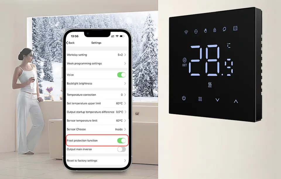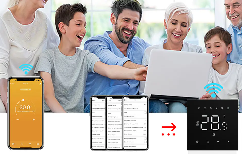 Zarządzaj temperaturą w swoim domu w nowoczesny sposób. Inteligentny termostat Avatto WT410-16A-B przeznaczony jest do kontroli ogrzewania elektrycznego o maksymalnym obciążeniu wynoszącym 16 A. Dzięki funkcji łączności Wi-Fi możesz zdalnie sterować temperaturą za pośrednictwem aplikacji. Produkt współpracuje także z popularnymi asystentami głosowymi i umożliwia tworzenie harmonogramów oraz integrację z innymi inteligentnymi urządzeniami. Postaw na innowacyjne rozwiązania i oszczędź na rachunkach za prąd, ciesząc się komfortem i ciepłem!