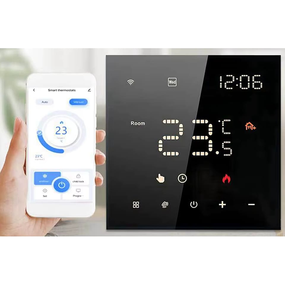 ?? Główne Funkcje: Zdalne Sterowanie: Steruj temperaturą w swoim domu z dowolnego miejsca na świecie za pomocą aplikacji Tuya Smart lub Smart Life. Programowanie Tygodniowe: Ustaw harmonogram ogrzewania z 6 różnymi przedziałami czasowymi na każdy dzień tygodnia, dostosowując go do swojego trybu życia. Precyzyjne Czujniki: Wbudowany czujnik temperatury oraz dodatkowy czujnik podłogowy NTC3950 10k (w zestawie) zapewniają dokładność pomiaru do ±0,5°C. Tryby Pracy: Wybierz między trybem ręcznym a automatycznym, aby dostosować działanie termostatu do swoich potrzeb. Bezpieczeństwo: Funkcja ochrony przed przegrzaniem podłogi z możliwością ustawienia limitu temperatury w zakresie 30–70°C.?? Integracja z Systemami Smart Home:Termostat współpracuje z popularnymi asystentami głosowymi, takimi jak Google Home i Amazon Alexa, umożliwiając sterowanie głosowe. Dodatkowo, dzięki aplikacji Tuya, możesz tworzyć scenariusze automatyzacji z innymi urządzeniami smart w Twoim domu.?? Specyfikacja Techniczna: Zasilanie: 95–240V AC, 50–60 Hz Maksymalne Obciążenie: 16A Zakres Ustawień Temperatury: 1–30°C Zakres Wyświetlanej Temperatury: 5–99°C Dokładność Pomiaru: ±0,5°C Interfejs: Dotykowy panel z podświetlanym ekranem LED Montaż: Pasuje do standardowych polskich puszek podtynkowych?? Zawartość Zestawu: Termostat WiFi Tuya 16A Czujnik temperatury podłogowej NTC3950 10k Instrukcja obsługi Elementy montażowe