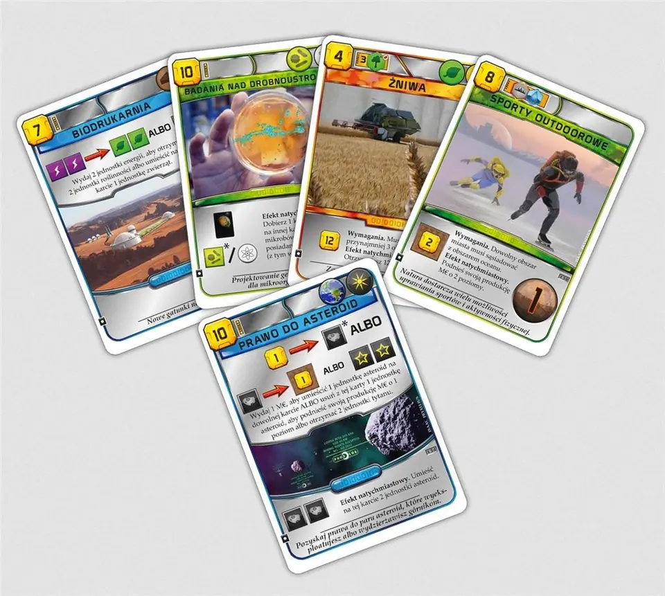 Rozszerz swoje możliwości inwestowania w wielkoskalowe projekty kosmiczne dzięki Prawu do asteroid! Ta dodatkowa karta, która zostanie dołączona i użyta w odpowiednim momencie, może dać Ci znaczną przewagę, zapewniając dostęp do jednostek tytanu lub zwiększenie produkcji kredytów. Bez względu na to, czy dążysz do zdobycia tytułu Bankiera, czy planujesz odważne (i kosztowne) inwestycje w kosmiczne projekty, ta karta na pewno przyciągnie Twoją uwagę!