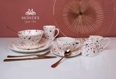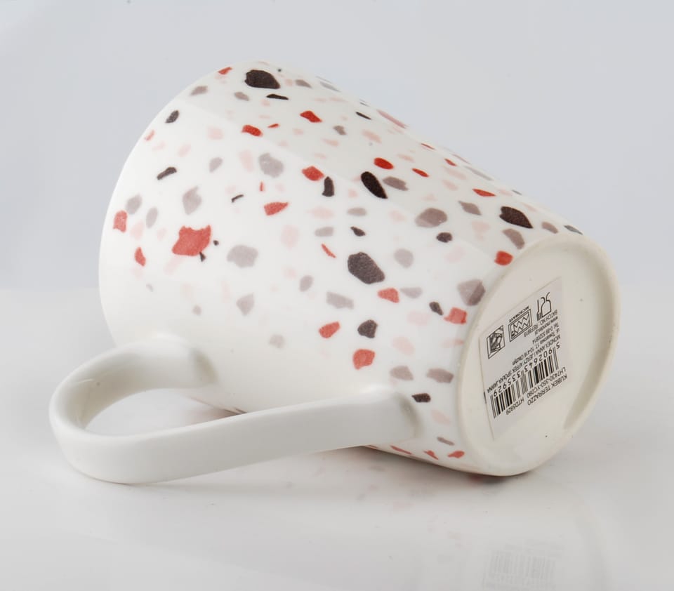 Porcelanowy kubek z kolekcji TERAZZO marki AFFEK DESIGN. Najmodniejszy wzór sezonu może znaleźć się w Twojej kuchni i jadalni! Unikatowy wzór tzw. lastryko w modnych koralowo-szarych barwach. W kolekcji dostępne filiżanki ze spodkiem, talerze deserowe, obiadowe, cukiernica z mlecznikiem oraz miska.DŁUGOŚĆ 9.30 cm SZEROKOŚĆ 13.00 cm WYSOKOŚĆ 10.70 cm pojemność: 350 ml