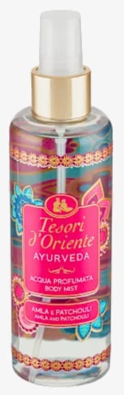 Tesori D'Oriente mgiełka do ciała 200ml. Ayurveda, Eteryczny i otulający zapach o dobroczynnych właściwościach relaksujących. Drzewno-bursztynowa kompozycja, rozświetlona akcentami słodkiej pomarańczy i cytryny, wzbogacona o napar z paczuli i drzewa cedrowego, zapewnia intensywne uczucie dobrostanu i harmonii. Ciecz i pary – wysoce łatwopalne. Trzymać z dala od źródeł ciepła.