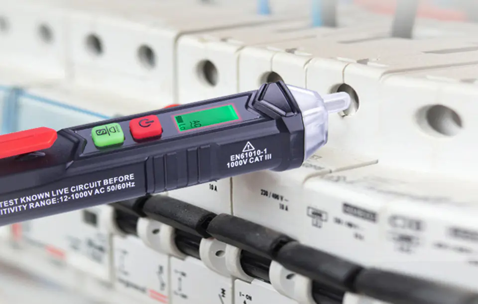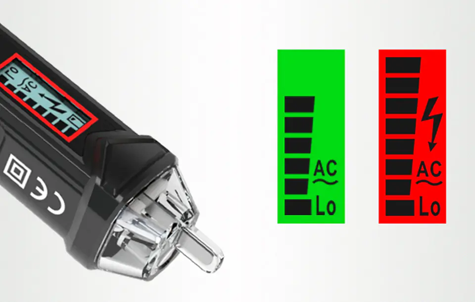 Ten bezdotykowy detektor napięcia (NCV) i fazy zapewnia precyzyjny pomiar i bezpieczeństwo użytkowania. Wyposażony w wyświetlacz LCD oraz przycisk regulacji czułości - jest bardzo wygodny w obsłudze. Oferuje funkcję sprawdzania punktów przerwania, a także wykrywania aktywnych i nieaktywnych kabli. Po 5 minutach bezczynności wyłącza się automatycznie. Wbudowana latarka LED ułatwi Ci pracę. Urządzenie jest zasilane 2 bateriami AAA 1,5 V.