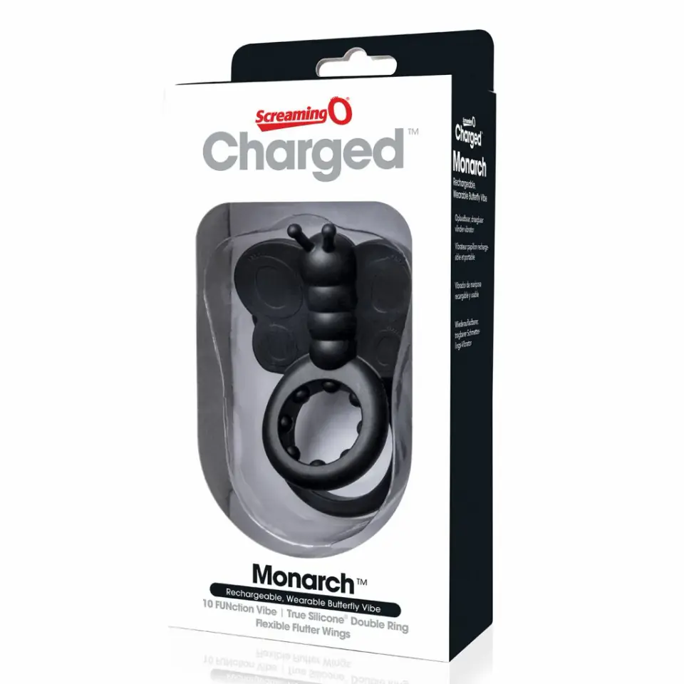 The Screaming O Charged Monarch Black to zaawansowany pierścień z funkcją wibracji, zaprojektowany w celu zapewnienia maksymalnego komfortu użytkowania oraz wsparcia w utrzymaniu długotrwałej erekcji. Model wykonany został z miękkiego, elastycznego silikonu, ktory doskonale dopasowuje się do anatomicznego kształtu. Zastosowanie dwoch obręczy gwarantuje stabilność oraz precyzyjne dopasowanie, obejmując zarowno podstawę, jak i nasadę.