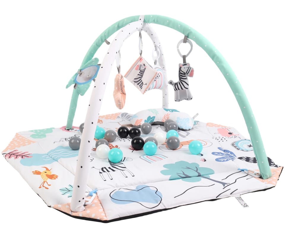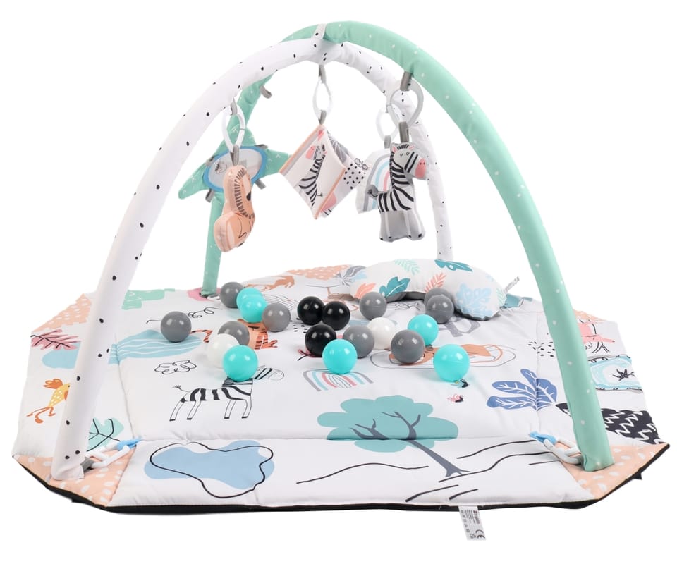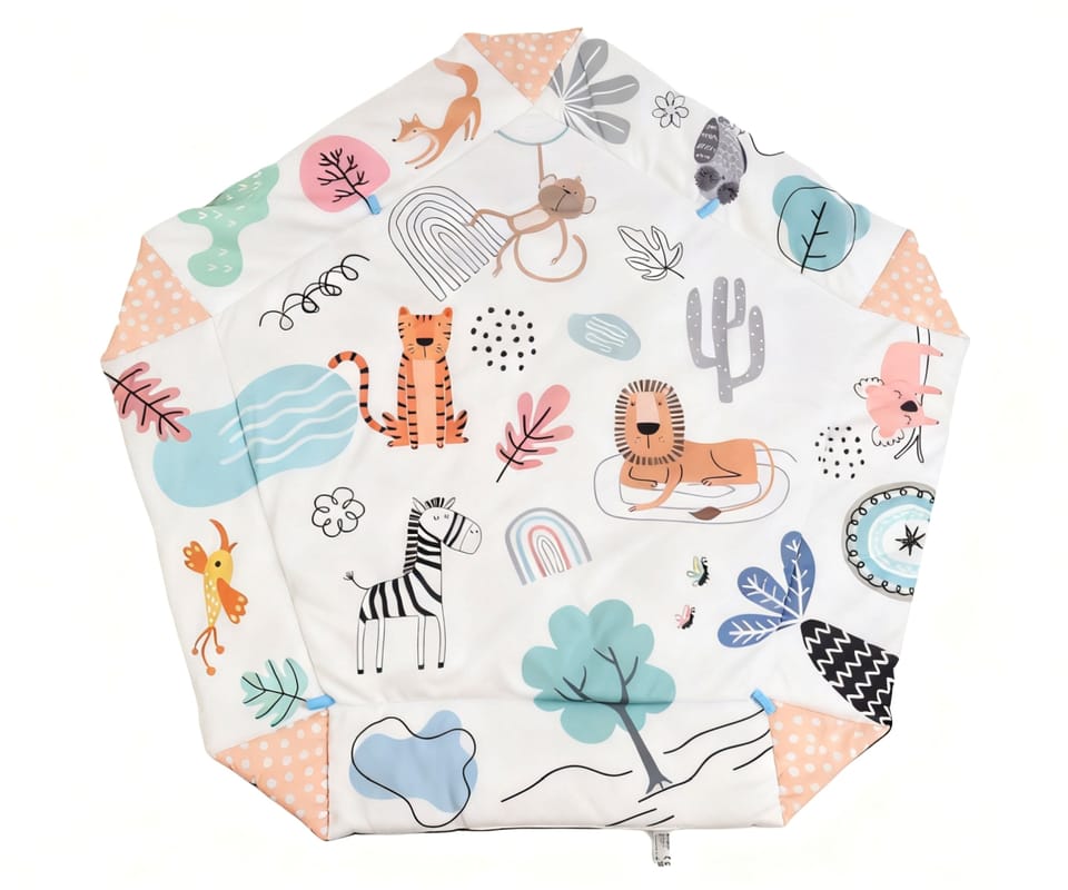 Mata edukacyjna TinyMini Czuczuś to wielofunkcyjna mata edukacyjna dla niemowląt, która wspiera rozwój dziecka już od pierwszych dni życia (0+). Łączy w sobie zabawę, bezpieczeństwo i stymulację sensoryczną, dopasowując się do kolejnych etapów rozwoju malucha.Dzięki przemyślanej konstrukcji i bogatemu wyposażeniu mata rośnie razem z dzieckiem — od leżenia na pleckach, przez tummy time, aż po raczkowanie.4 funkcje użytkowania – jedna mata, wiele możliwościMata edukacyjna TinyMini Czuczuś 4w1 może być używana na kilka sposobów: