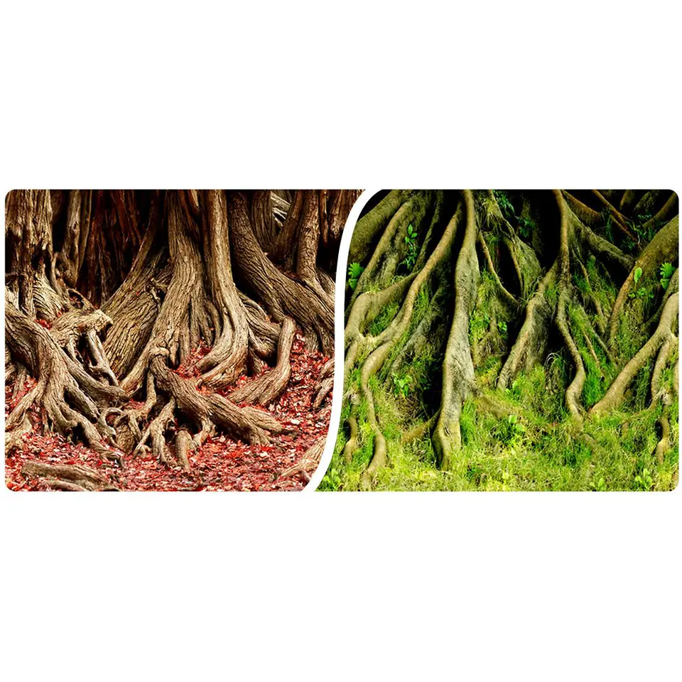 Tło do akwarium - fototapeta Korzenie drzew Stwórz w swoim zbiorniku niepowtarzalną dekorację z naszym tłem! Fototapety do akwarium to dobrze znane miłośnikom akwarystyki i sprawdzone przez lata rozwiązanie. Pozwalają ci cieszyć się pięknym efektem za niską cenę, szybko i bez wysiłku. Dwustronne tło przedstawiające majestatyczne korzenie drzew, to idealny dodatek do zbiornika akwariowego. Pokreśli kolory roślin i dekoracji, a przede wszystkim pozwoli ci stworzyć barwne otoczenie dla twoich ryb i świetnie odzwierciedlić ich naturalne środowisko. dwie możliwości aranżacji - folia dwustronna z różnymi motywami fotograficznymi możliwość dopasowania do swojego akwarium - w razie potrzeby tło możesz przyciąć do pożądanych wymiarów krajobraz lasu - pozwoli ci stworzyć piękne akwarium trwałe i odporne na działanie wody - wykonane z wysokiej jakości materiałów dostępne w różnych rozmiarach - dobierz wielkość do tego, czego potrzebujesz Tła akwariowe firmy Happet produkowane są z mocnej, wytrzymałej folii. Dzięki temu przez długi czas kolory nadruków pozostaną żywe i wyraźne, żeby twój zbiornik mógł zachwycać wszystkich oglądających. Wymiary: Wysokość: 60 cm Długość: 15 m