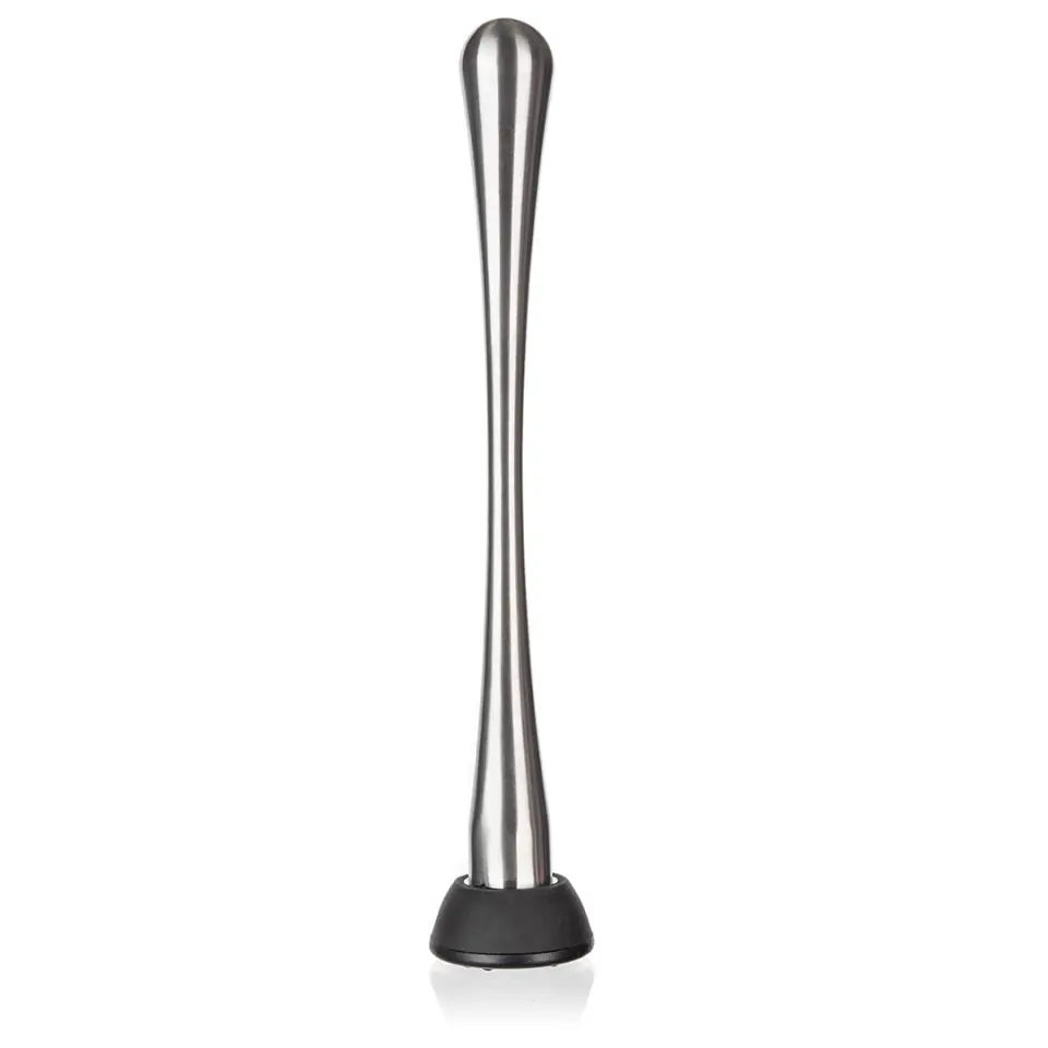 Tłuczek barmański (muddler) wykonany został ze stali nierdzewnej połączonej z tworzywem sztucznym. Dzięki temu unikniemy porysowania naczyń, w których przygotowujemy koktajle.