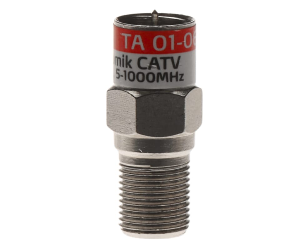 Urządzenie przeznaczone do zmniejszania poziomu sygnału w instalacji antenowej RTVTłumik posiada metalową obudowę, co gwarantuje skuteczne ekranowanie zakłóceńUrządzenie posiada przejście stałoprądowe