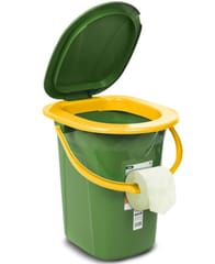 Uchwyt do przenoszenia może służyć również jako uchwyt papieru toaletowego, a wgłębienie znajdujące się dnie wiadra ułatwia jego opróżnianie.