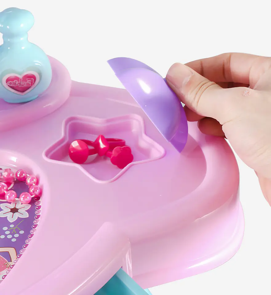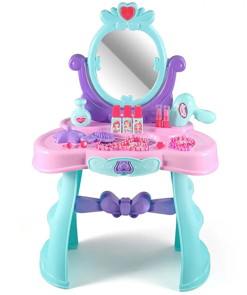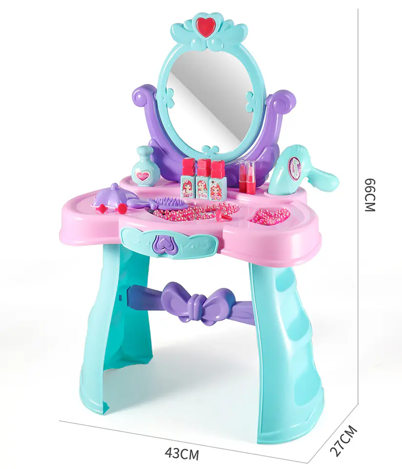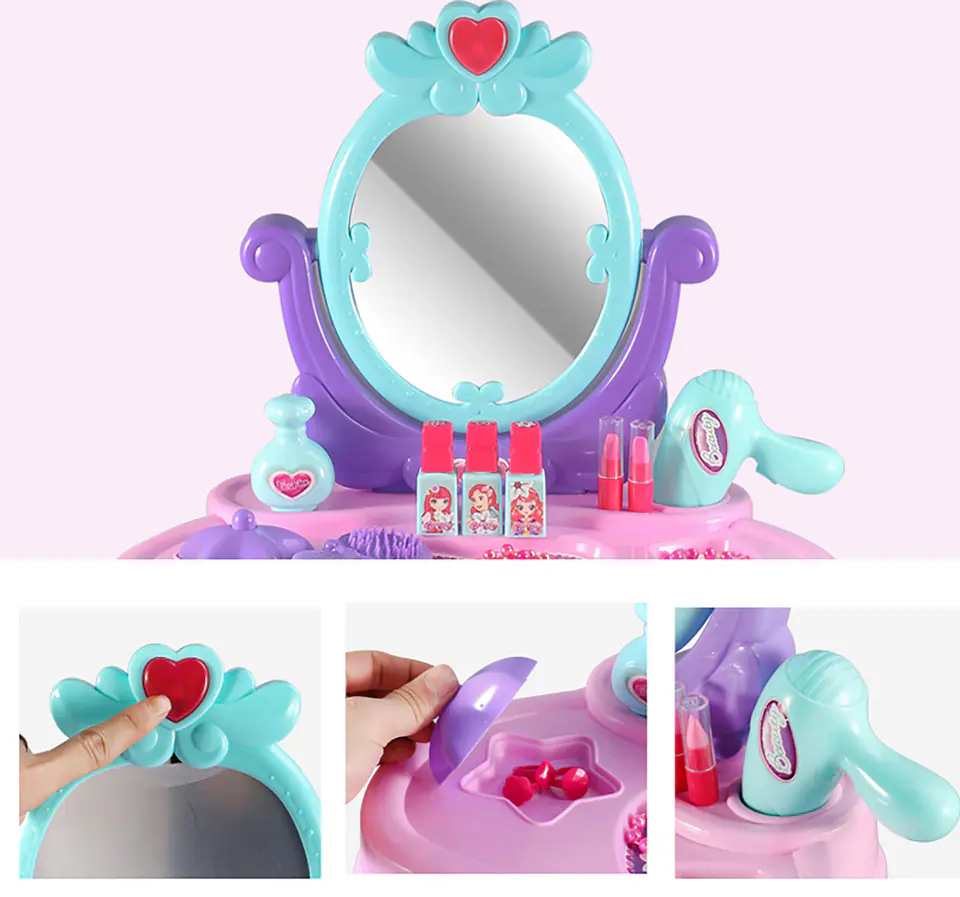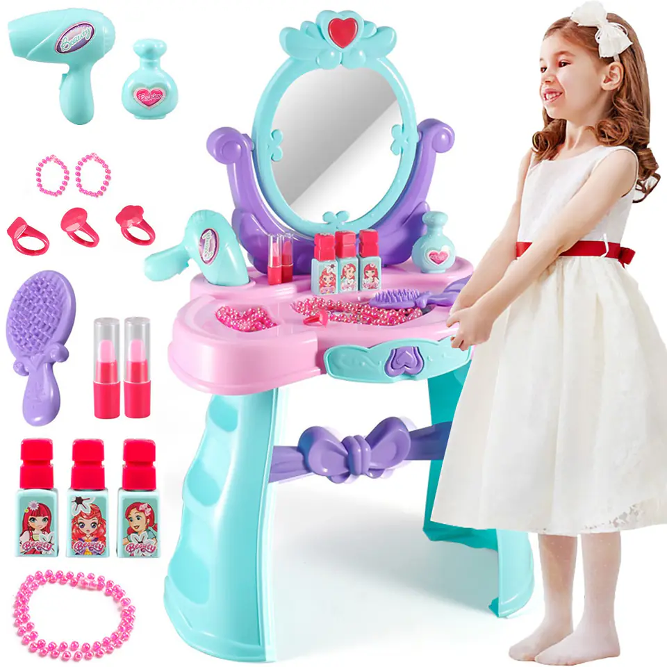 ❤️Fantastyczna zabawka, toaletka dla małej księżniczki! Każda dziewczynka marzy o swoich własnych kosmetykach, przyborach, aby móc poczuć się być dorosłą kobietą. Dzięki temu wspaniałemu zestawowi każda mała dziewczynka, może być jak mama i bawić się w dorosłą kobietę. Wszystkie kosmetyki, to imitacja prawdziwych przyborów jakich używają dorośli.