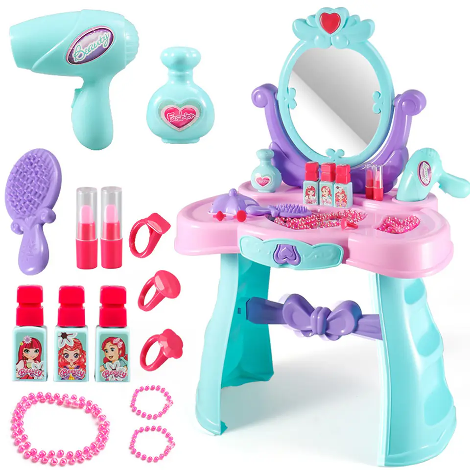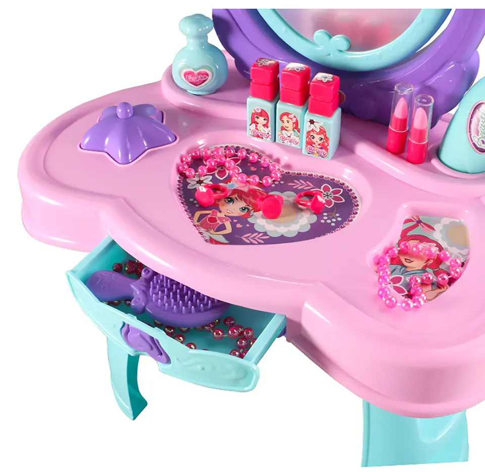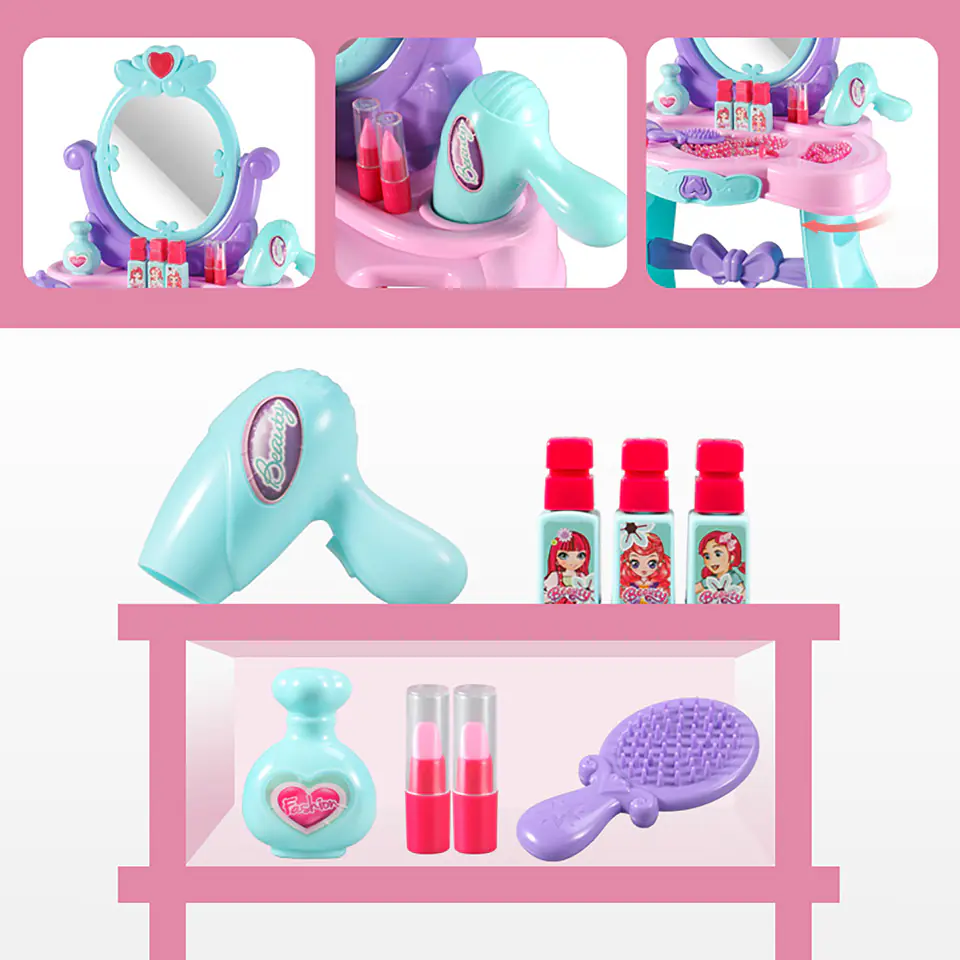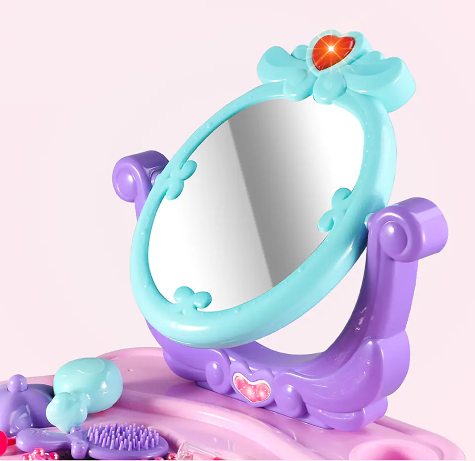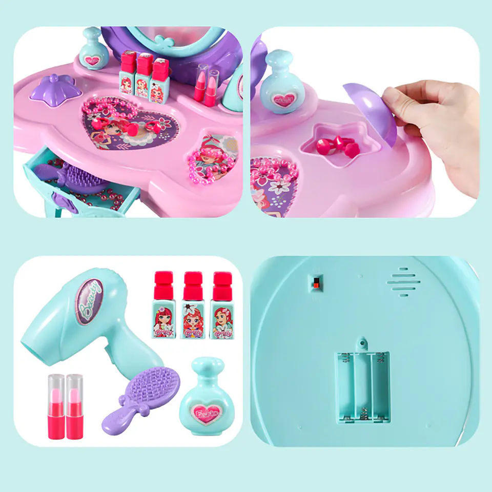 ❤️Fantastyczna zabawka, toaletka dla małej księżniczki! Każda dziewczynka marzy o swoich własnych kosmetykach, przyborach, aby móc poczuć się być dorosłą kobietą. Dzięki temu wspaniałemu zestawowi każda mała dziewczynka, może być jak mama i bawić się w dorosłą kobietę. Wszystkie kosmetyki, to imitacja prawdziwych przyborów jakich używają dorośli.