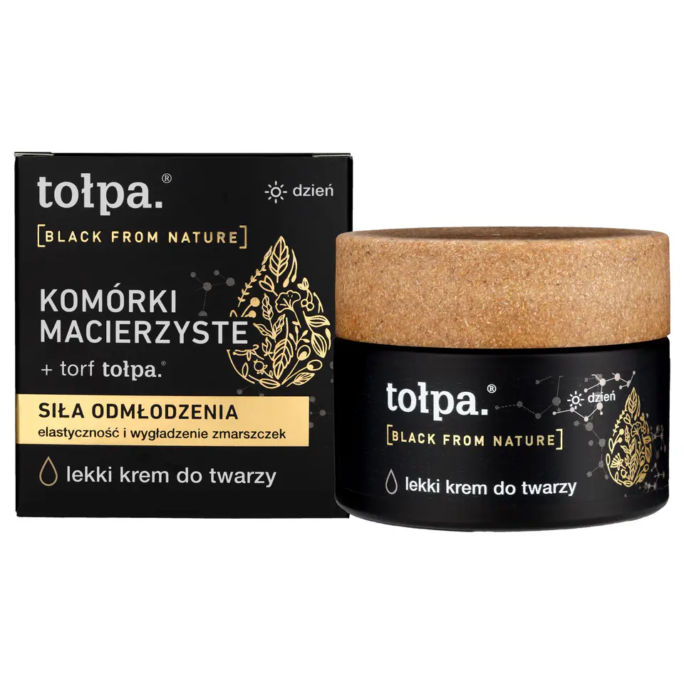Wiemy, że w tym czarnym opakowaniu zamknęliśmy wręcz kopalnię składników poprawiających kondycję skóry. Cenny torf tołpa oraz roślinne komórki macierzyste, czyli dwa silne antyoksydanty, które opóźniają starzenie się skóry i poprawiają jej ogólną kondycję. Niezależnie od wieku. nasz krem jest przeznaczony do skóry normalnej i mieszanej. Eliminuje oznaki zmęczenia, które prowadzą do starzenia. Silnie nawilża i wygładza skórę, poprawia jej elastyczność. Zmniejsza rozmiar płytkich i średnich zmarszczek oraz wspomaga zdolności regeneracyjne. Wzmacnia ochronę antyoksydacyjną przed wolnymi rodnikami i stresem oksydacyjnym. Skóra staje się promienna i pełna blasku, wygląda na młodszą i wypoczętą. małe wielkie składniki torf tołpa, antyoksydacyjne komórki macierzyste z motylego krzewu, nawilżający kwas hialuronowy