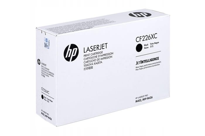 Oryginalny toner HP przeznaczony do modeli:HP LaserJet Pro M402d (C5F92A), M402dn (C5F94A), M402dne (C5J91A), M402dw, M402m (C5F96A), M402n (C5F93A), M426dn MFP, M426dw MFP (F6W13A), M426fdn MFP (F6W14A), M426fdw MFP (F6W15A), M426fw MFP, M426m MFP, M426n MFPOdpowiednik:26X CF226X26XH CF226XH26JC CF226JC26X CF226XD - DWUPAK