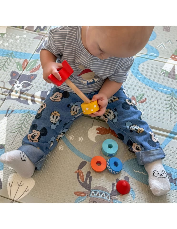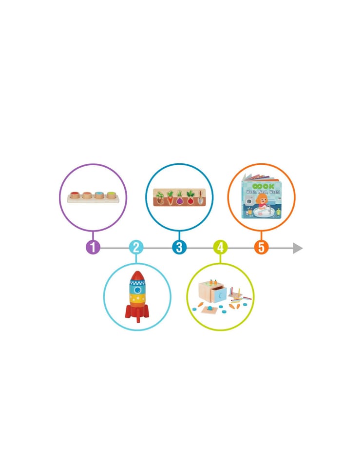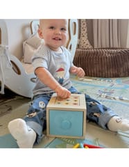 Ten edukacyjny zestaw zabawek pomaga dzieciom rozwijać umiejętności motoryczne, koordynację ręka-oko, rozpoznawanie kolorów, krytyczne myślenie i umiejętności rozwiązywania problemów. Pomaga także małemu dziecku odkrywać świat, dotykając różnych przedmiotów i obserwując rezultaty swoich działań. Zabawka ma kilka poziomów: