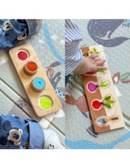-Poziom 4Sortowanie patyczków według koloru:Najbardziej zaawansowany poziom trudności, gdzie dziecko uczy się rozpoznawania kolorów i precyzyjnego sortowania patyczków do odpowiednich otworów.
