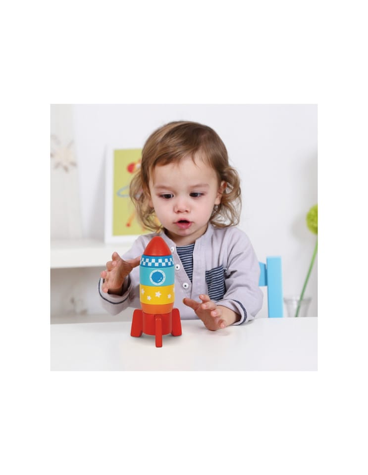 Wykonana z wytrzymałego drewna, dzięki czemu nawet najmniejsze dzieci mogą układać rakiety w jaskrawych kolorach.Dziecko może ułożyć pięknie wzorzyste klocki, aby zbudować uroczą rakietę. Modele 3D często odzwierciedlają realne obiekty, takie jak pojazdy, budynki czy maszyny. Dzieci uczą się o nich podczas układania, co jest fascynującym doświadczeniem edukacyjnym