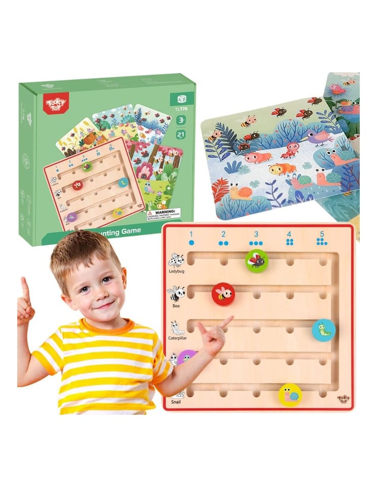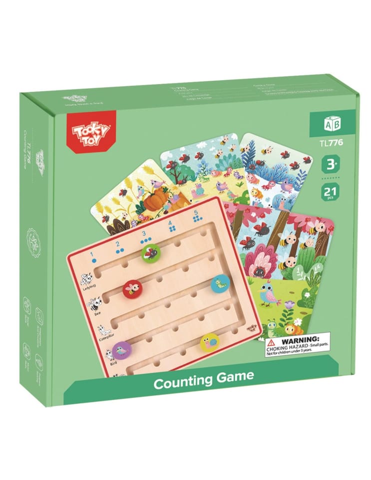 Drewniana gra od Tooky Toy wspomaga naukę liczenia poprzez zabawę. Leśny motyw przeniesie brzdąca w świat małych, leśnych przyjaciół: biedroneczki, ptaszka, ślimaczka, gąsieniczki i pszczółki, które będą towarzyszyć przez cały czas zabawy. Producent wybierając najwyższej jakości, ekologiczne materiały zadbał o bezpieczeństwo dzieci i środowiska.