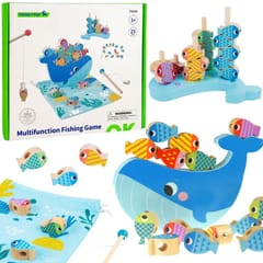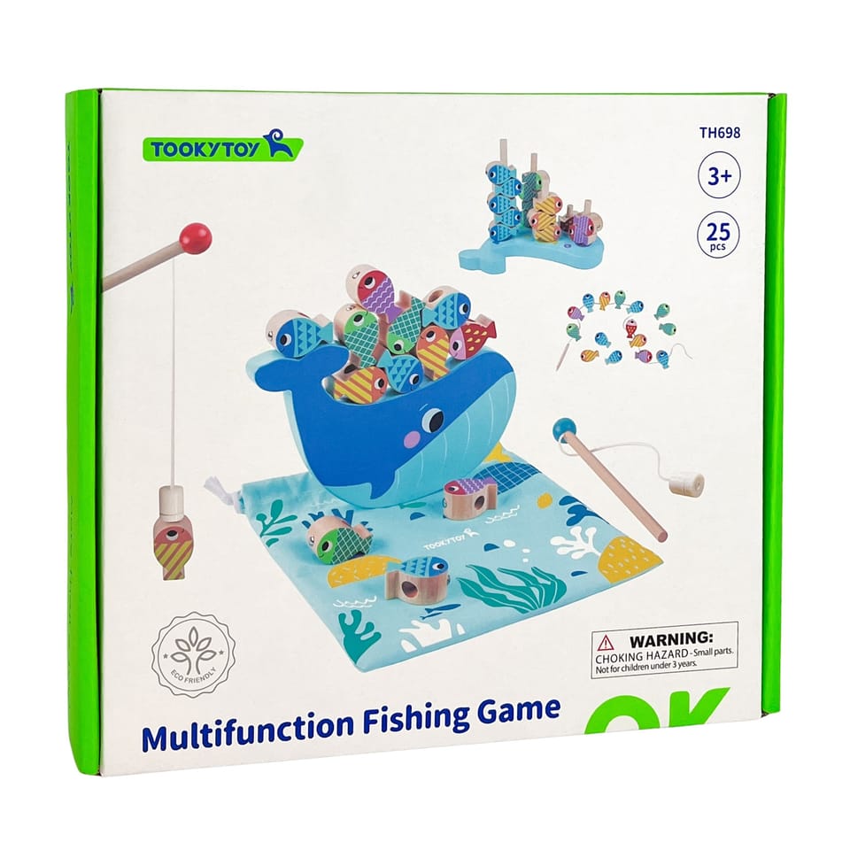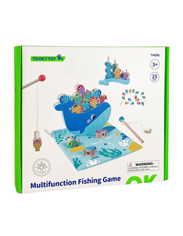 TOOKY TOY Drewniana Gra Wieloryb i Rybki Wielofunkcyjna 4 w 1 jest ulepszoną wersją klasycznej magnetycznej gry wędkarskiej, która została rozszerzona o dodatkowe tryby gier. Dzięki różnym trybom gry, można w bardzo łatwy i szybki sposób przejść od jednej gry do innej. Niezależnie od tego czy w naszej grze będzie element rywalizacji, to możemy być pewni, że dziecko będzie pracować nad koordynacją wzrokowo-ruchową.