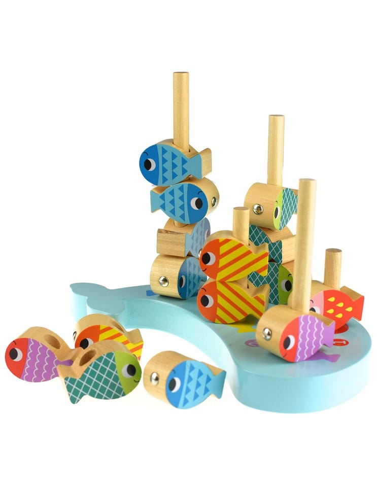 - - Zabawa na 4 możliwe sposoby : nawlekanka, układanka, łowienie rybek, piramidka