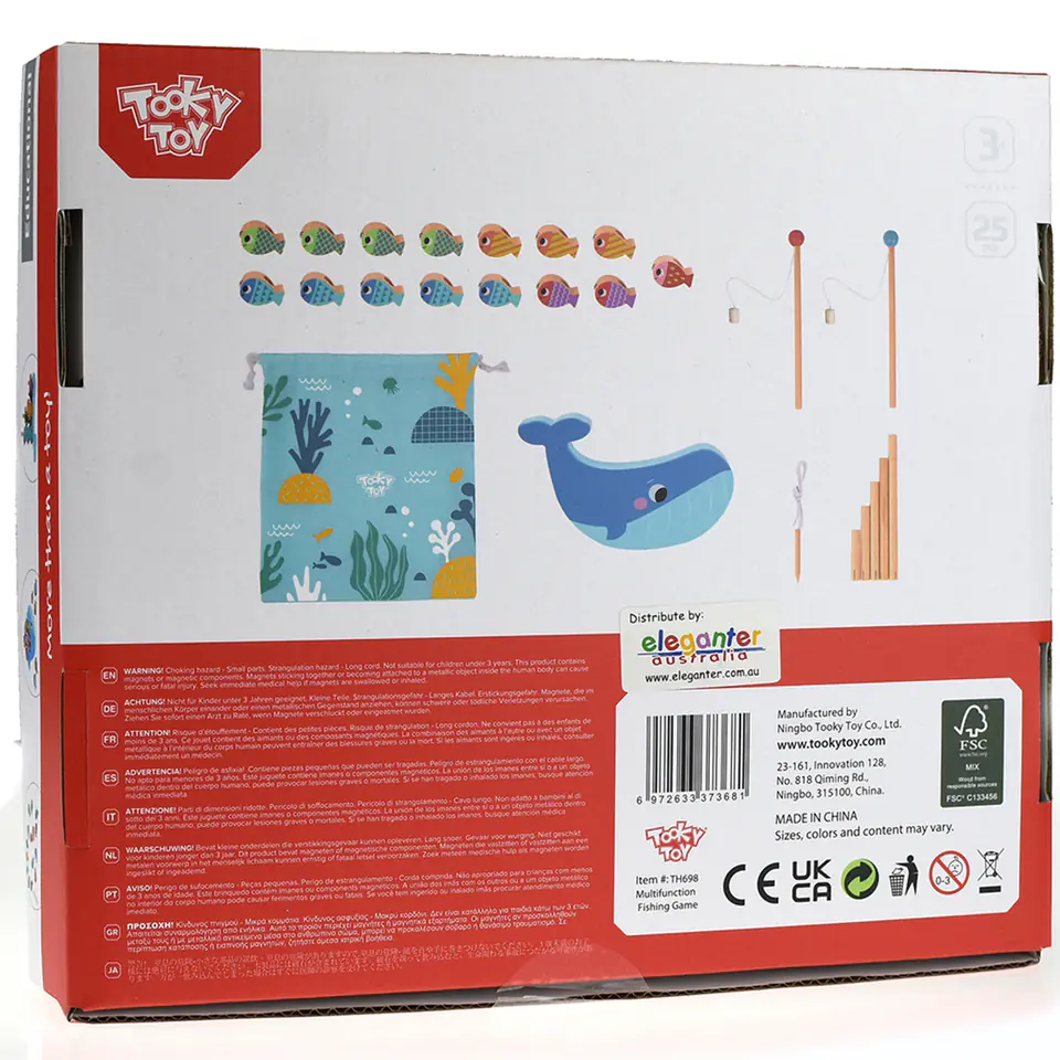 TOOKY TOY Drewniana Gra Wieloryb i Rybki Wielofunkcyjna 4 w 1 jest ulepszoną wersją klasycznej magnetycznej gry wędkarskiej, która została rozszerzona o dodatkowe tryby gier. Dzięki różnym trybom gry, można w bardzo łatwy i szybki sposób przejść od jednej gry do innej. Niezależnie od tego czy w naszej grze będzie element rywalizacji, to możemy być pewni, że dziecko będzie pracować nad koordynacją wzrokowo-ruchową.