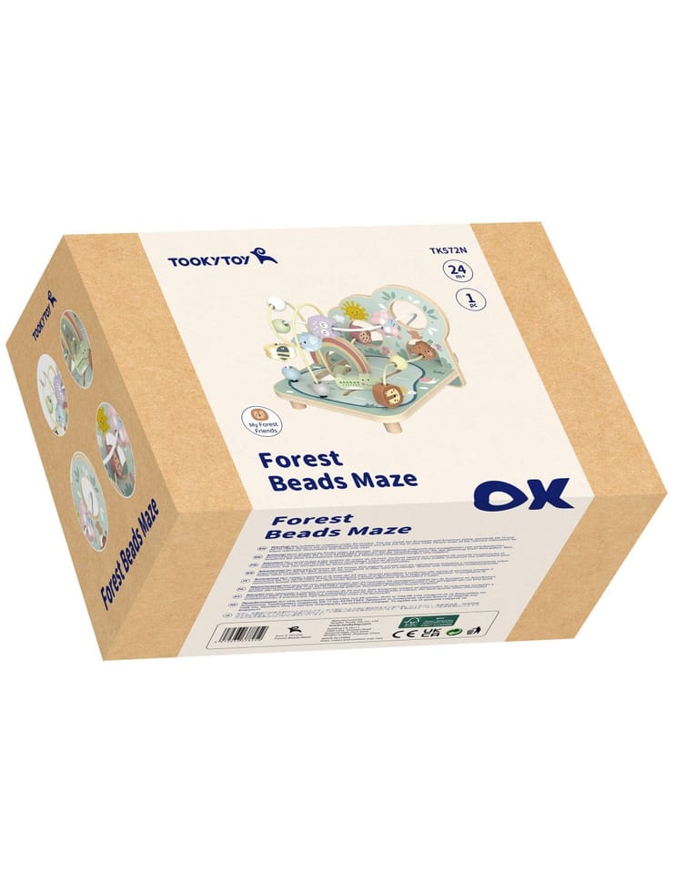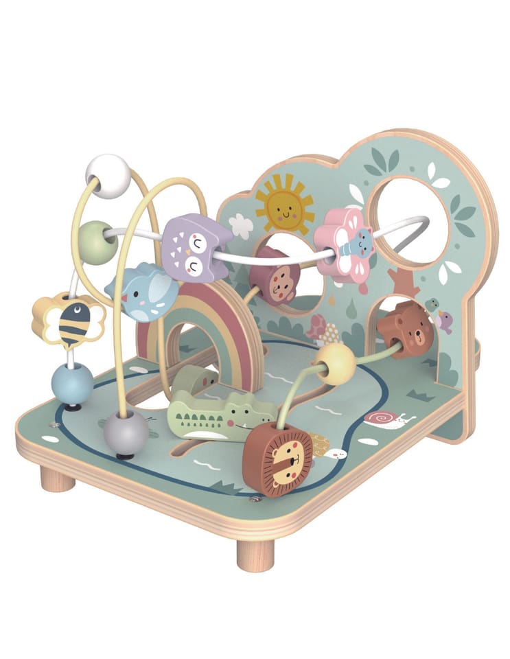 Pętla Motoryczna Leśny Labirynt od marki TOOKY TOY jest świetną pozycją do ćwiczenia precyzji ruchów dłoni i paluszków dziecka. Pięknie wykonana plansza z drewna i koraliki przedstawiające urocze zwierzątka przyciągają kolorystyką i wykonaniem. Już na pierwszy rzut oka można też zauważyć, że przeprowadzenie nawet jednego koralika czy zwierzątka po jednej z trzech tras będzie nie lada wyzwaniem. Ukończenie toru na pewno przyniesie poczucie sukcesu u bardziej ambitniejszych maluchów