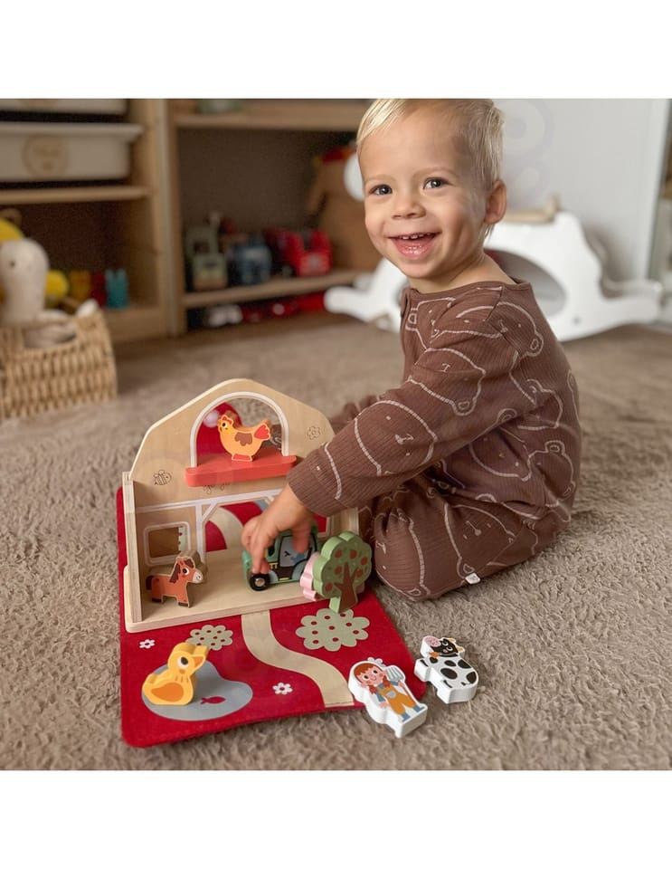 Witaj w zaczarowanym świecie wiejskiego życia, gdzie każde zwierzątko ma swoją historię! Ten uroczy, drewniany zestaw to idealna propozycja dla małych miłośników zwierząt i przygód na farmie. Przenośna farma, która łatwo się składa, skrywa w sobie całą gromadę figurek i akcesoriów, by Twój maluch mógł odgrywać niezliczone scenki i tworzyć własne, fascynujące opowieści. To doskonała zabawka, która rozwija kreatywność i dostarcza godzin wspaniałej, edukacyjnej zabawy, gdziekolwiek jesteście!