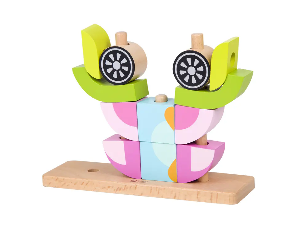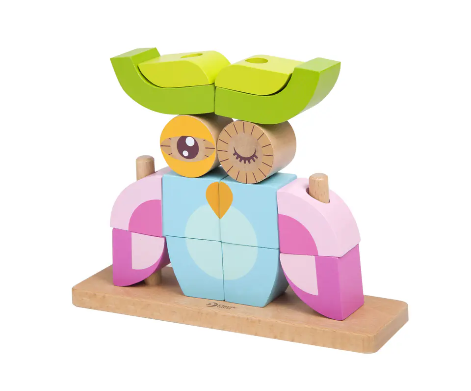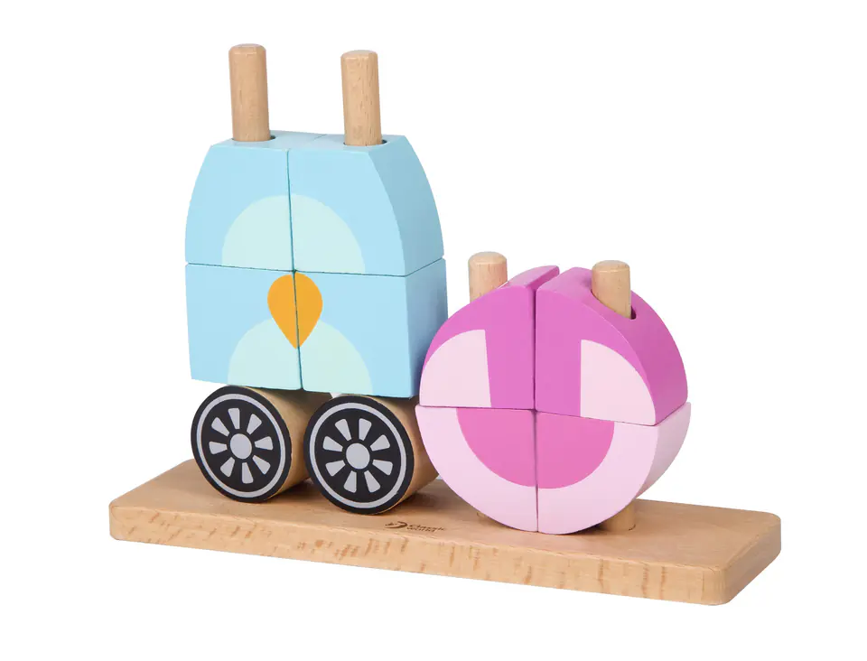 - ✔️ Koordynację ręka–oko – dziecko uczy się dopasowywać elementy do odpowiednich miejsc, co wspiera precyzję ruchów i kontrolę motoryczną.