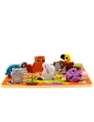 - - Zestaw zawiera: tablicę z wgłębieniami i 7 elementów przedstawiających zwierzątka w domu,