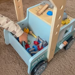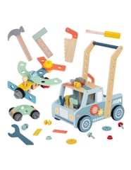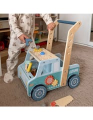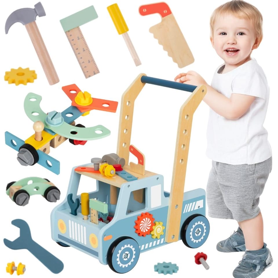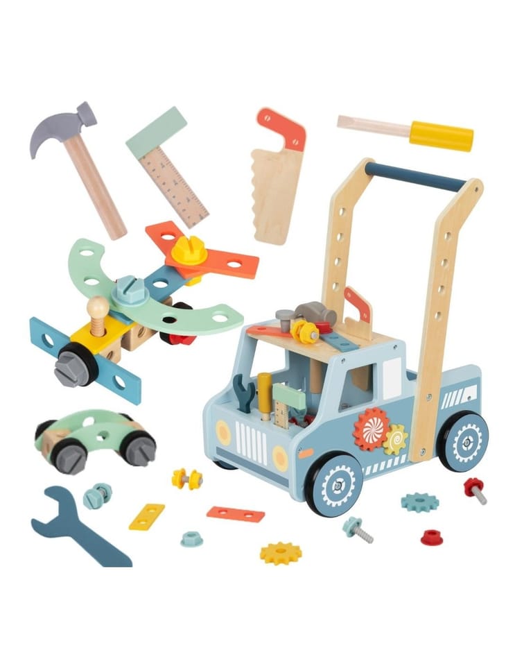 Pierwszy krok i pierwsza naprawa – to możliwe z tym wyjątkowym chodzikiem marki Tooky Toy! Połączenie stabilnego pchacza z pełnowymiarowym warsztatem to prawdziwe centrum zabawy dla małego majsterkowicza. Dziecko nie tylko doskonali swoje umiejętności chodzenia, ale również zanurza się w fascynujący świat majsterkowania, gdzie każda śruba, każdy przekładnik i każde narzędzie to nowa przygoda. Pojemny schowek w kabinie pojazdu pozwala zabrać wszystkie akcesoria w podróż po domu, a solidna konstrukcja zapewnia bezpieczeństwo podczas pierwszych kroków.
