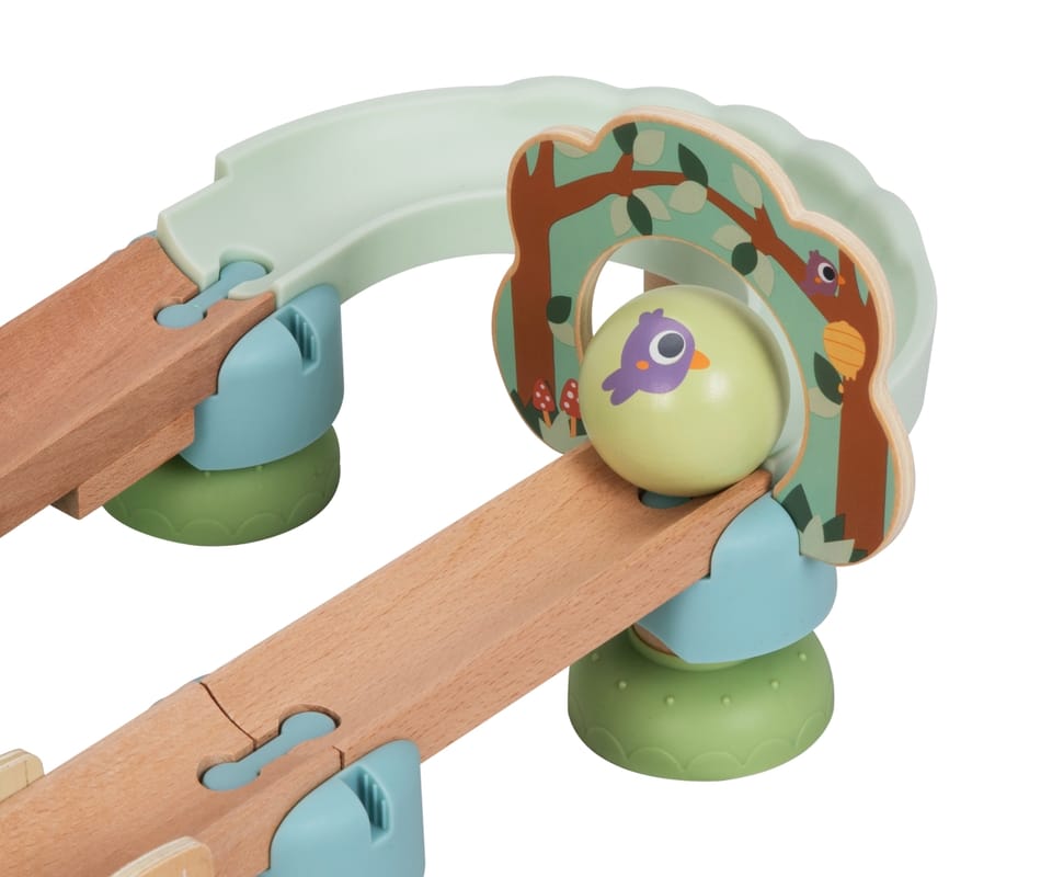 Kulki zjeżdżają po drzewkowej rampie, grają wesołe dźwięki na cymbałkach i pokonują różne przeszkody – to frajda, która wciąga na długo. A co najfajniejsze? Podczas zabawy dzieci rozwijają również swoją kreatywność i wyobraźnię, doskonalą motorykę małą czy poznają podstawowe zasady fizyki. Ponadto budowanie i obserwowanie piłki będzie dla nich prawdziwą frajdą. Piłki są duże i bezpieczne!
