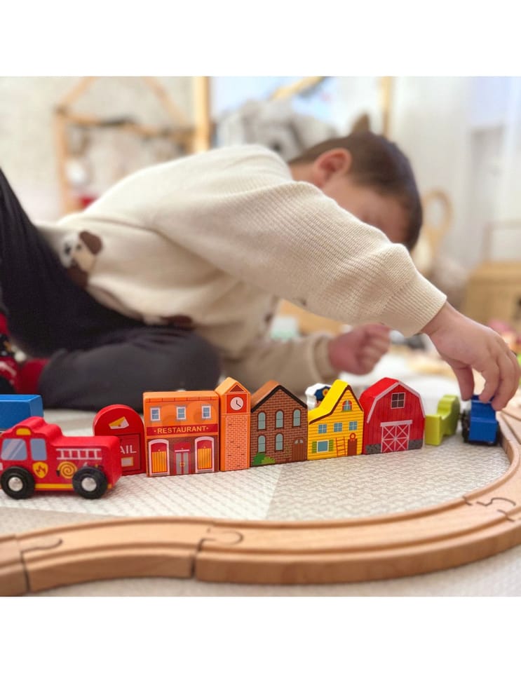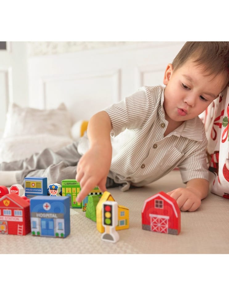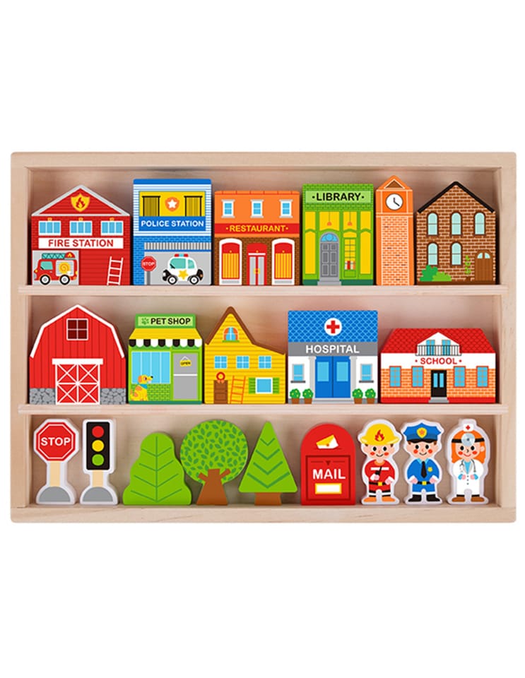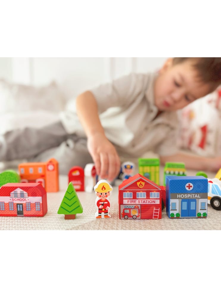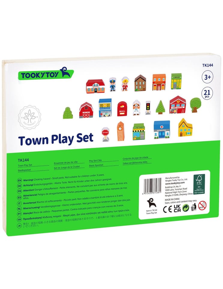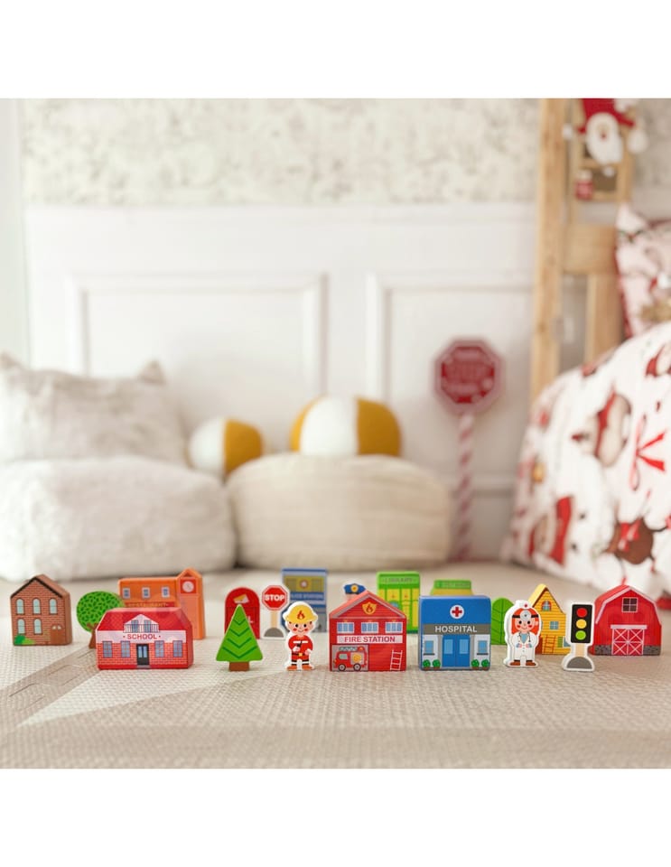 Zaprojektuj własne miasto z tym wyjątkowym zestawem drewnianych figurek marki Tooky Toy! Ten zestaw zawiera 21 starannie wykonanych elementów, które otwierają przed Twoim dzieckiem nieskończone możliwości tworzenia unikalnych historii. W eleganckim drewnianym pudełku kryje się cały mikroświat – od straży pożarnej, przez szkołę i szpital, aż po przytulne domki i znaki drogowe. Każdy budynek został pomalowany bezpiecznymi, nietoksycznymi farbami i ozdobiony żywymi kolorami, które natychmiast przyciągają uwagę małych architektów. To nie tylko zabawka – to platforma do rozwijania kreatywności, gdzie dziecko może budować, aranżować i tworzyć własne scenariusze zabawy solo lub z przyjaciółmi.